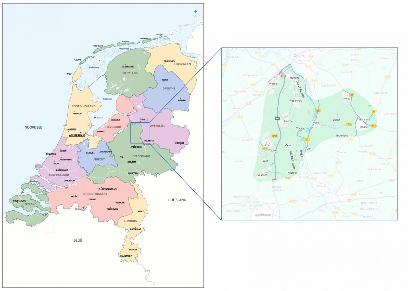 Ons werkgebied ligt globaal in het gebied tussen Zwolle en Apeldoorn en in de omgeving van Raalte.
